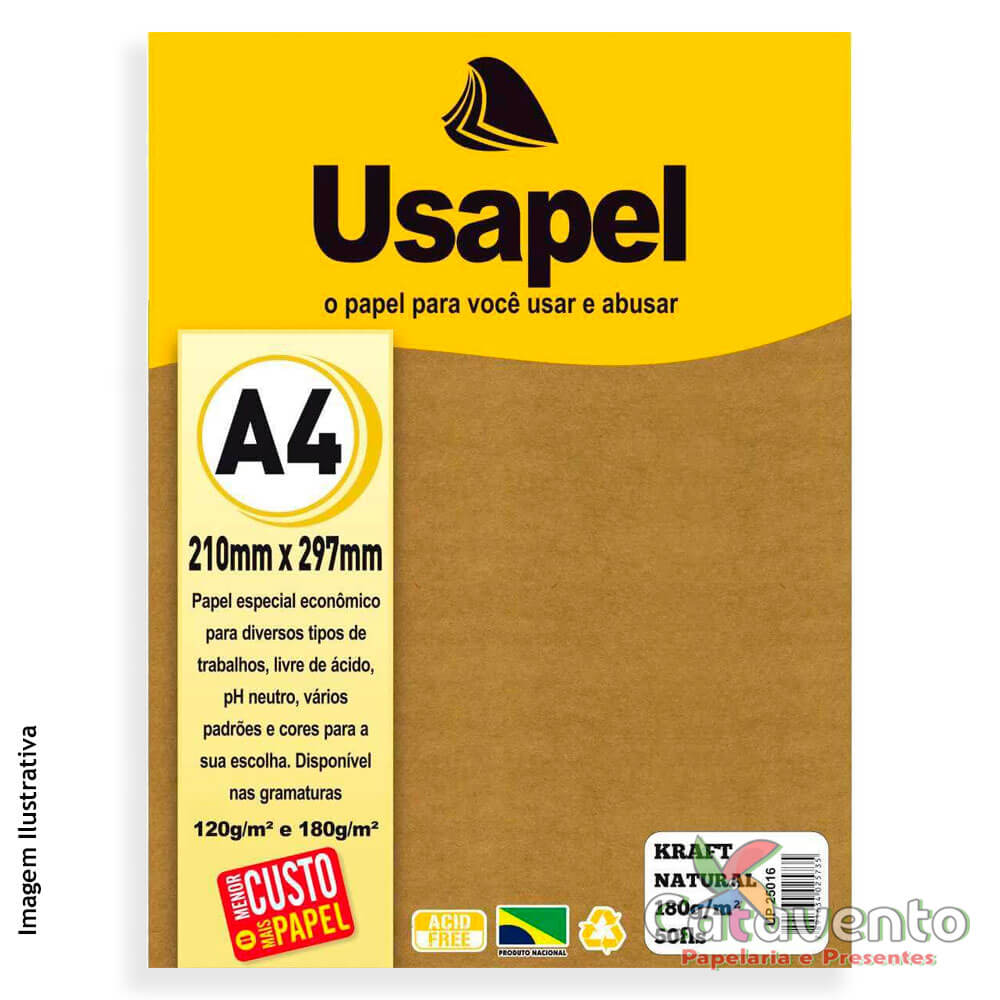 Papel Kraft Natural com 180g/m² cortado no tamanho A4.